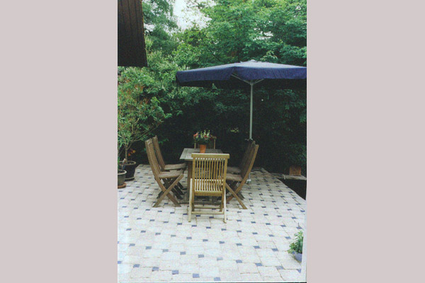 1-Achtel-Steine, kobaltblau, kombiniert mit einem gerumpelten Betonpflasterstein