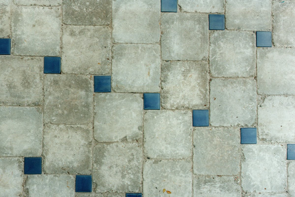 1-Achtel-Steine, kobaltblau, kombiniert mit einem gerumpelten Betonpflasterstein