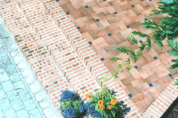 1-Achtel-Steine, kobaltblau, kombiniert mit einem Pflasterklinker "Buchenlaub"