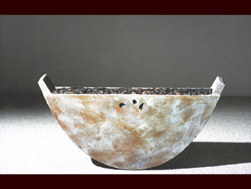 Steinzeug mit Porzellanhaut, gefüllt mit gebranntem Schiefer